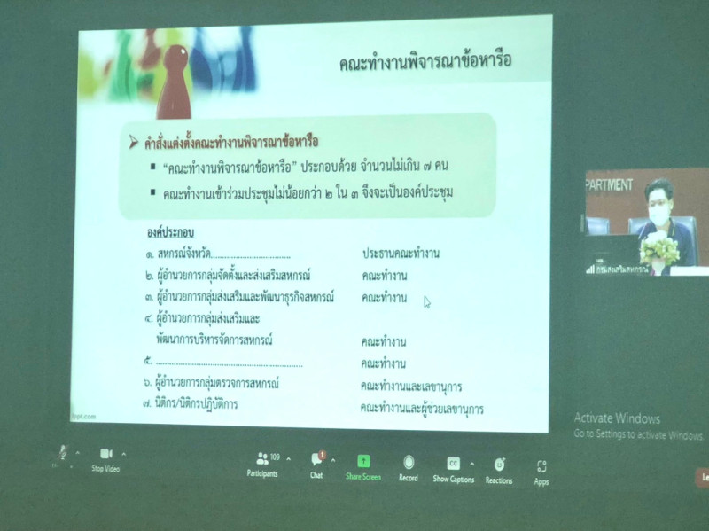 วันที่ 10 กุมภาพันธ์ 2566 นายประเสริฐศักดิ์ ณ นคร สหกรณ์จังหวัดกระบี่ มอบหมายให้เจ้าหน้าที่กลุ่มจัดตั้งและส่งเสริมสหกรณ์ กลุ่มตรวจการสหกรณ์ และกลุ่มส่งเสริมสหกรณ์ 1 จำนวน 5 คน เข้าร่วมโครงการประชุมเชิงปฏิบัติการ เพื่อสร้างนวัตกรรมการสืบค้นหนังสือข้อหารือผ่านระบบสื่อสารทางไกล (ระบบ Zoom) ณ ห้องประชุมสำนักงานสหกรณ์จังหวัดกระบี่ เพื่อเป็นฐานข้อมูลให้ผู้ปฏิบัติงานด้านการส่งเสริมและพัฒนาด้านการกำกับดูแลสหกรณ์และกลุ่มเกษตรกร