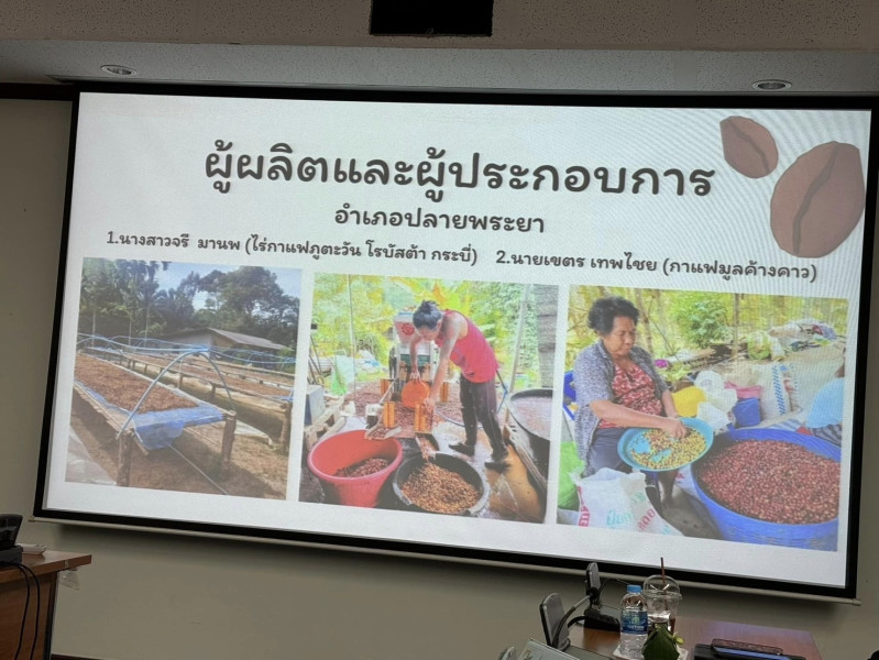 วันที่ 14 กุมภาพันธ์ 2567 นายประเสริฐศักดิ์ ณ นคร สหกรณ์จังหวัดกระบี่ มอบหมายให้นางสาวเสาวภา หวานแก้ว นักวิชาการสหกรณ์ชำนาญการเข้าร่วมประชุมคณะกรรมการอำนวยการสิ่งบ่งชี้ทางภูมิศาสตร์ จังหวัดกระบี่ เพื่อให้การพิจารณารับรองการประเมินคุณภาพสินค้าสิ่งบ่งชี้ทางภูมิศาสตร์และขออนุญาตใช้ตราสัญลักษณ์สิ่งบ่งชี้ทางภูมิศาสตร์ไทย (GI) “กาแฟเมืองกระบี่” โดยมีรองผู้ว่าราชการจังหวัดกระบี่ (นายอนุวรรตน์ โหมดพริ้ง) เป็นประธานในการประชุมณ ห้องประชุมปลายพระยา ชั้น 2 ศาลากลางจังหวัดกระบี่ อำเภอเมือง จังหวัดกระบี่