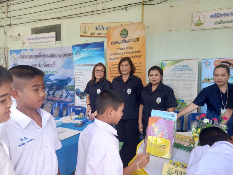 วันที่ 18 กรกฎาคม 2567 นายประเสริฐศักดิ์ ณ นคร สหกรณ์จังหวัดกระบี่ มอบหมายให้ นางปาริชาต สุธาประดิษฐ์ ผู้อำนวยการกลุ่มจัดตั้งและส่งเสริมสหกรณ์ พร้อมด้วย นางสาวนันทพร กาญจนะหุต นักวิชาการสหกรณ์ชำนาญการ และนางสาวณัฐสุดา ชูดวง นักวิชาการสหกรณ์ เข้าร่วมโครงการคลินิกเกษตรเคลื่อนที่ในพระราชานุเคราะห์ สมเด็จพระบรมโอรสาธิราชฯ สยามมกุฎราชกุมารเนื่องในโอกาสพระราชพิธีมหามงคลเฉลิมพระชนมพรรษา 6 รอบ 28 กรกฏาคม 2567 และโครงการจังหวัดกระบี่เคลื่อนที่ ครั้งที่ 8 โดยมี นายสมชาย หาญภักดีปฏิมา ผู้ว่าราชการจังหวัดกระบี่ เป็นประธานในพิธีเปิด ณ โรงเรียนบ้านช้างตาย ตำบลเขาดิน อำเภอเขาพนม จังหวัดกระบี่