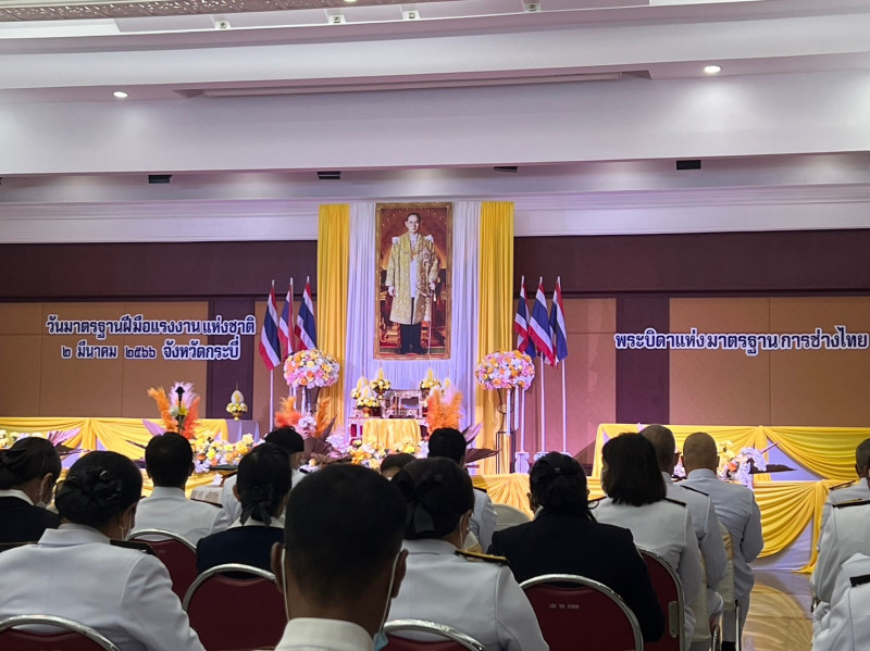 วันที่ 2 มีนาคม 2566 นายประเสริฐศักดิ์ ณ นคร สหกรณ์จังหวัดกระบี่ มอบหมายให้ นางปาริชาต สุธาประดิษฐ์ ผู้อำนวยการกลุ่มจัดตั้งและส่งเสริมสหกรณ์ พร้อมด้วยบุคลากร กลุ่มจัดตั้งและส่งเสริมสหกรณ์ เข้าร่วมพิธีวางพานพุ่มดอกไม้ ถวายราชสักการะแด่พระบาทสมเด็จพระบรมชนกาธิเบศร มหาภูมิพลอดุลยเดชมหาราชบรมนาถบพิตร และร่วมงานวันมาตรฐานฝีมือแรงงานแห่งชาติ ณ ห้องประชุมสุดมงคล เทศบาลเมืองกระบี่ อ.เมือง จ.กระบี่