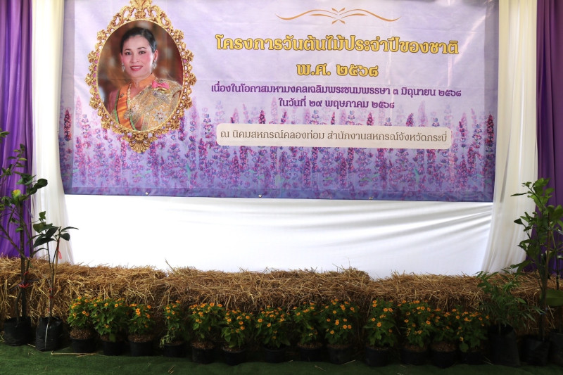 วันที่ 29 พฤษภาคม 2568 สำนักงานสหกรณ์จังหวัดกระบี่ จัดกิจกรรมวันต้นไม้ประจำปีของชาติ พ.ศ.2568 เฉลิมพระเกียรติสมเด็จพระนางเจ้าสุทิดา พัชรสุธาพิมลลักษณพระบรมราชินี เนื่องในโอกาสมหามงคลเฉลิมพระชนมพรรษา 3 มิถุนายน 2568 ในการสร้างจิตสำนึกและร่วมในการดูแลต้นไม้และพื้นที่สีเขียว ดูแลรักษาทรัพยากรและสิ่งแวดล้อม เพื่อปลูกจิตสำนึกให้บุคลากรในสำนักงานและสร้างความตระหนักให้กับประชาชนในพื้นที่ได้รู้จักคุณประโยชน์และโทษของการตัดไม้ทำลายป่า สนับสนุนให้สำนักงานน่าอยู่ ร่มรื่น มีภูมิทัศน์ที่สวยงาม และเพื่อสนับสนุนนโยบายของรัฐบาลในการป้องกันและรักษาทรัพยากรป่าไม้ของชาติ โดยมี นายพิพัฒน์ นาคธรณินทร์ สหกรณ์จังหวัดกระบี่ เป็นประธานในพิธีและผู้นำร่วมกิจกรรม ร่วมกับบุคลากรสำนักงานสหกรณ์จังหวัดกระบี่ สมาชิกสหกรณ์นิคม ณ นิคมสหกรณ์คลองท่อม ตำบลเพหลา อำเภอคลองท่อม จังหวัดกระบี่