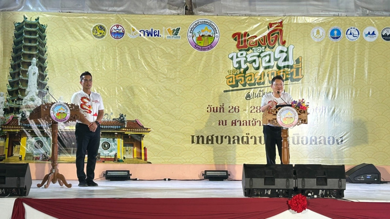 วันที่ 26 กันยายน 2568 เวลา 18.30 น. นายพิพัฒน์ นาคธรณินทร์ สหกรณ์จังหวัดกระบี่ เข้าร่วมพิธีเปิดโครงการมหกรรมส่งเสริมอาหารพื้นถิ่นเหนือคลอง“ของดี ของหรอยของอร่อยกระบี่ ”ณ ศาลเจ้าเฉ้งจุ้ยจ้อซู้ก๋ง ตำบลเหนือคลอง อำเภอเหนือคลอง จังหวัดกระบี่ โดยมีนาย อังกูล ศีลาเทวากูล ผู้ว่าราชการจังหวัดกระบี่ เป็นประธานในพิธีเปิด