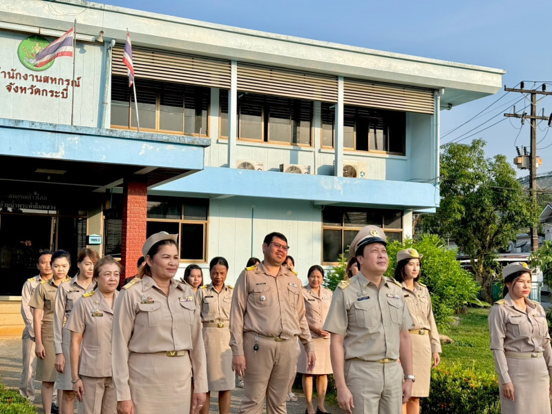 วันที่ 2 กุมภาพันธ์ 2569 เวลา 08.00 น.สำนักงานสหกรณ์จังหวัดกระบี่ จัดกิจกรรมเคารพธงชาติ เพื่อให้ข้าราชการหรือบุคลากร ได้เทิดทูนสถาบันสำคัญของชาติ เพื่อน้อมสำนึกเทิดทูนและรักษาไว้ซึ่งสถาบันชาติ ศาสนา พระมหากษัตริย์ตระหนักและเห็นคุณค่าของชาติ สร้างความรัก ความสามัคคีในหน่วยงาน สร้างวินัย รู้หน้าที่ความรับผิดชอบ คิดดี คิดชอบ มีสมาธิ สละเวลาร่วมกิจกรรมและรักษาเอกลักษณ์ของชาติโดยไว้สืบไป ณ บริเวณหน้าเสาธงสำนักงานสหกรณ์จังหวัดกระบี่ , นิคมสหกรณ์คลองท่อม , นิคมสหกรณ์อ่าวลึก