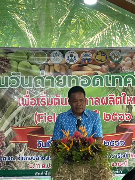 วันที่ 15 มีนาคม 2566 นายประเสริฐศักดิ์ ณ นคร สหกรณ์จังหวัดกระบี่ มอบหมายให้ นางเกศรินทร์ คะเณย์ นักวิชาการสหกรณ์ปฏิบัติการ พร้อมด้วยนางเกศินี วังบุญคง นักวิชาการสหกรณ์ เข้าร่วมจัดกิจกรรมงานวันถ่ายทอดเทคโนโลยีเพื่อเริ่มต้นฤดูกาลผลิตใหม่ (Field Day) ปี 2566 ณ ศูนย์เครือข่ายศูนย์เรียนรู้การเพิ่มประสิทธิภาพการผลิตสินค้าเกษตร แปลงนายประวัติ รักษารัตน์หมู่ 11 ตำบลปลายพระยา อำเภอปลายพระยา จังหวัดกระบี่ ซึ่งมีผลิตภัณฑ์ทางการเกษตรจากเกษตรกรมาจำหน่าย และมีการจัดแสดงการใช้โดรน (Drone) สำหรับพ่นยา พ่นปุ๋ย กำจัดวัชพืชทางการเกษตรจากสหกรณ์นิคมปลายพระยา จำกัด โดยได้รับเกียรติจาก นายชำนาญ นุ่นดำ เกษตรจังหวัดกระบี่ เป็นประธานในพิธีเปิดฯ