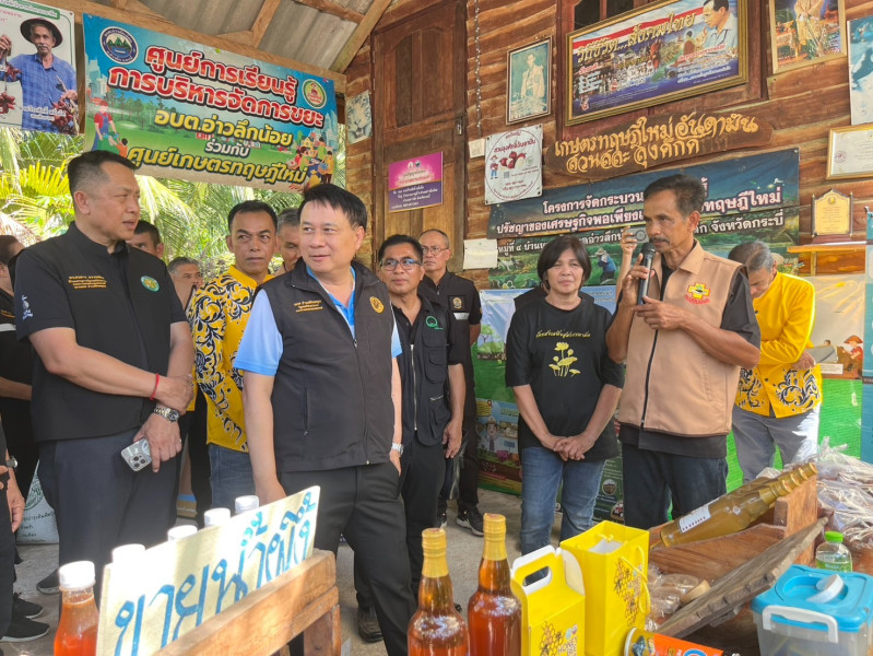 วันที่ 1 - 2 มีนาคม 2569 นายนเรศ ธำรงค์ทิพยคุณ รัฐมนตรีช่วยกระทรวงเกษตรและสหกรณ์ และคณะลงพื้นที่ตรวจราชการในพื้นที่จังหวัดกระบี่ โดยมี นายประวัติ แดงบรรจง รองอธิบดีกรมส่งเสริมสหกรณ์ นายพิพัฒน์ นาคธรณินทร์ สหกรณ์จังหวัดกระบี่ หัวหน้าส่วนราชการ และ บุคลากรสำนักงานสหกรณ์จังหวัดกระบี่ ร่วมติดตามลงพื้นที่ ศูนย์ถ่ายทอดเทคโนโลยีการพัฒนาที่ดินของนายวีรศักดิ์ หมิ่นโต หมอดินอาสาประจำตำบลอ่าวลึกน้อย บ้านบางแค หมู่ที่่ 4 ตำบลอ่าวลึกน้อย อำเภออ่าวลึก จังหวัดกระบี่ ,โครงการพัฒนาแหล่งน้ำเพื่อการเกษตรในเขตปฏิรูปที่ดินจังหวัดกระบี่ แปลง 602 ตำบลกระบี่น้อย อำเภอเมืองกระบี่ จังหวัดกระบี่ เพื่อรับฟังการบรรยายสรุปความเป็นมา วัตถุประสงค์ ความก้าวหน้า และปัญหาอุปสรรคในการดำเนินโครงการฯ โดย ปฏิรูปที่ดินจังหวัดกระบี่ และ สรุปผลการติดตามโครงการพัฒนาแหล่งน้ำเพื่อการเกษตรในเขตปฏิรูปที่ดินจังหวัดกระบี่ ปัญหาที่ของ ส.ป.ก./สหกรณ์ ปัญหาชุมนุมสหกรณ์ปาล์มน้ำมัน และร่วมมอบปัจจัยการผลิต โฉนดต้นไม้ และโฉนดเพื่อการเกษตร พร้อมกับกล่าวมอบนโยบายและพบปะเกษตรกร ณ สำนักงานเทศบาลตำบลกระบี่น้อย อำเภอเมืองกระบี่ จังหวัดกระบี่