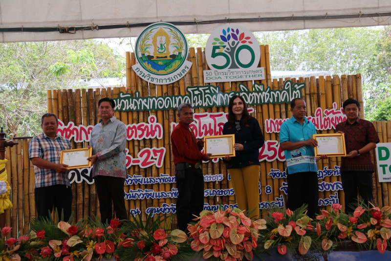 วันที่ 26 เมษายน 2566 รัฐมนตรีช่วยว่าการกระทรวงเกษตรและสหกรณ์ (ท่านมนัญญา ไทยเศรษฐ์) เป็นประธานเปิดงานวันถ่ายทอดเทคโนโลยีการผลิตพืชภาคใต้ ในโอกาสเฉลิมฉลองครบรอบ 50 ปี กรมวิชาการเกษตร โดยมอบประกาศนียบัตร เกษตรกร GAP พืช และพืชอินทรีย์ดีเด่นของ สวพ.7และสวพ.8 มอบรางวัลการประกวดผลผลิต ใบประกาศเกษตรกรต้นแบบ ผู้นำเกษตรแปลงใหญ่/ศพก.ดีเด่นภาคใต้ เปิดตัวโครงการ "DOA Green Together" แปลงต้นแบบการบริหารจัดการคาร์บอนเครดิตในการผลิตพืช กรมวิชาการเกษตร เปิดตัวโครงการการผลิตแบบผสมผสานทางการเกษตร จากกรมวิชาการเกษตร (มะพร้าว พืชร่วมและการเลี้ยงผึ้ง) 1 ไร่ 1 แสน ในพื้นที่ภาคใต้ แปลงสาธิตพันธุ์พืชและเทคโนโลยี และเยี่ยมชมนิทรรศการภายในงาน โดยท่านอนุวรรตน์ โหมดพริ้ง รองผู้ว่าราชการจังหวัดกระบี่ นายนิรันดร์ มูลธิดา รองอธิบดีกรมส่งเสริมสหกรณ์ พร้อมหัวหน้าส่วนราชการสังกัดกระทรวงเกษตรและสหกรณ์ในจังหวัดกระบี่ ให้การต้อนรับ ณ ศูนย์วิจัยและพัฒนาการเกษตรกระบี่ ตำบลเขาคราม อำเภอเมือง จังหวัดกระบี่
